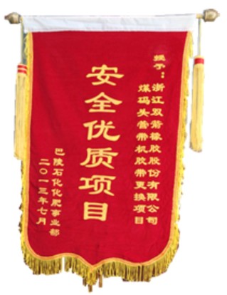 近日,公司售后服務部收到湖南岳陽巴陵石化公司錦旗,對6月10日-7月22日,公司葉松坤的安裝膠接技術指導工作表示肯定,湖南岳陽巴陵石化公司授予我公司煤碼頭管帶機膠帶更換項目為“安全優質項目”,這是對我工大公司售后服務人員的服務態度、技術技能和產品質量給予充分肯定。
