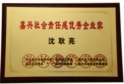 5月28日,在以“責(zé)任引領(lǐng)未來 共建誠信嘉興”為主題的嘉興市首屆“最具社會責(zé)任感企業(yè)(家)頒獎典禮上,一年多來,通過大眾網(wǎng)絡(luò)、報紙投票和組委會評議,認(rèn)真篩選,層層選拔,最終誕生的嘉興最具社會責(zé)任感的企業(yè)和企業(yè)家以及優(yōu)秀企業(yè)和企業(yè)家各10名受到了表彰。我公司董事長沈耿亮也獲此殊榮。
